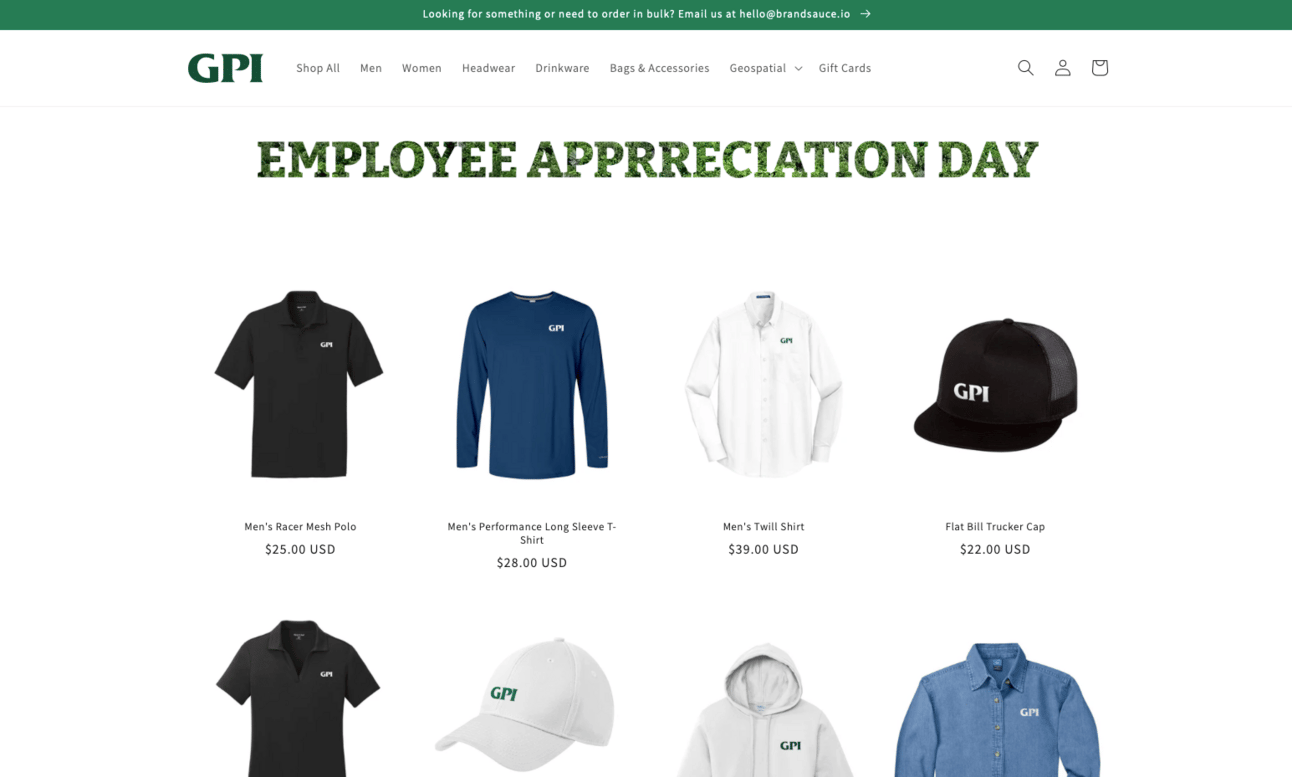 We've partnered with GPI to create a custom Employee Appreciation Day Pop Up Shop launching on March 7th. This innovative approach will give their team members the freedom to select a gift they truly want, perfectly aligning with GPI's people-first philosophy. By prioritizing choice and quality, GPI is demonstrating their commitment to meaningful employee recognition.