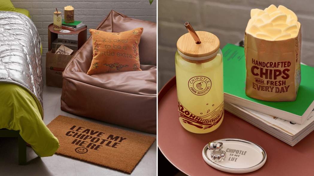 But Chipotle didn’t stop at burritos and points — they doubled down with actual branded swag for dorm rooms. To celebrate the launch, the brand teamed up with Urban Outfitters on a limited-edition “A Little Extra” Dorm Collection that transforms Chipotle’s menu favorites into must-have college accessories.