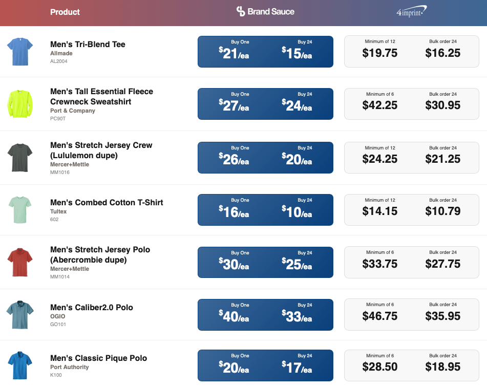 People ask us all the time how we compare to 4imprint on pricing. They are widely known as the lowest cost option, but the reality is we beat them on both price and flexibility.