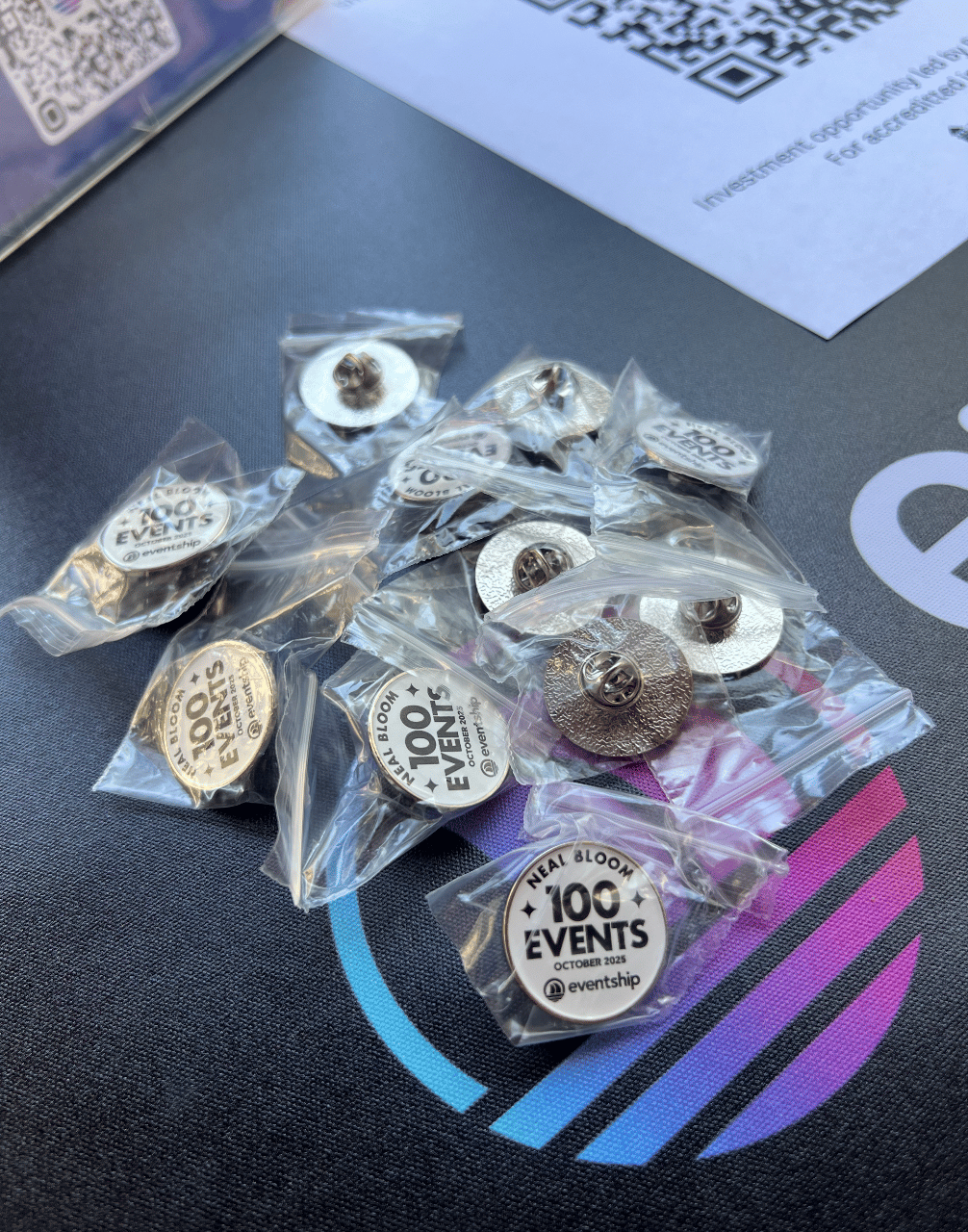 This event carried a special moment. To honor Neal’s 100th event on the Eventship platform, we created a commemorative pin. Ian on our team jumped in right away, turning the design into vector, and within just seven days we had the pins produced and delivered. Watching people’s excitement as they received them reminded me why those small touches matter.